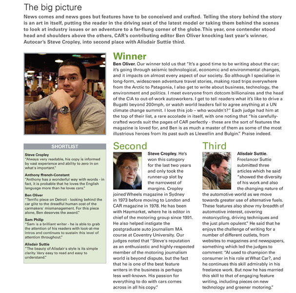 I’m a regular contributor to the Mail on Sunday and CAR magazine in the UK, Automobile in the US, Wheels in Australia and the Irish Times. I have regular columns in magazines in China, Hong Kong and the Gulf, and in customer titles for brands such as American Express and Credit Suisse. Through my agent I syndicate stories to every major global market.